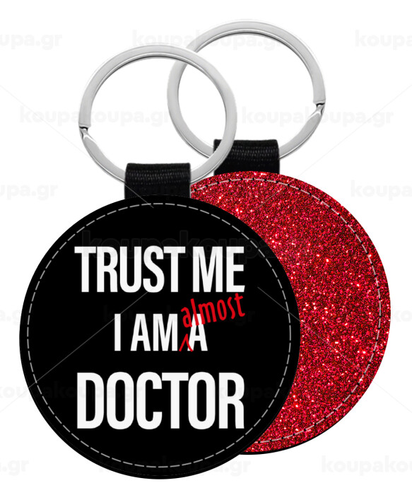 Trust me, i am (almost) Doctor, Μπρελόκ Δερματίνη, στρογγυλό ΚΟΚΚΙΝΟ (5cm)