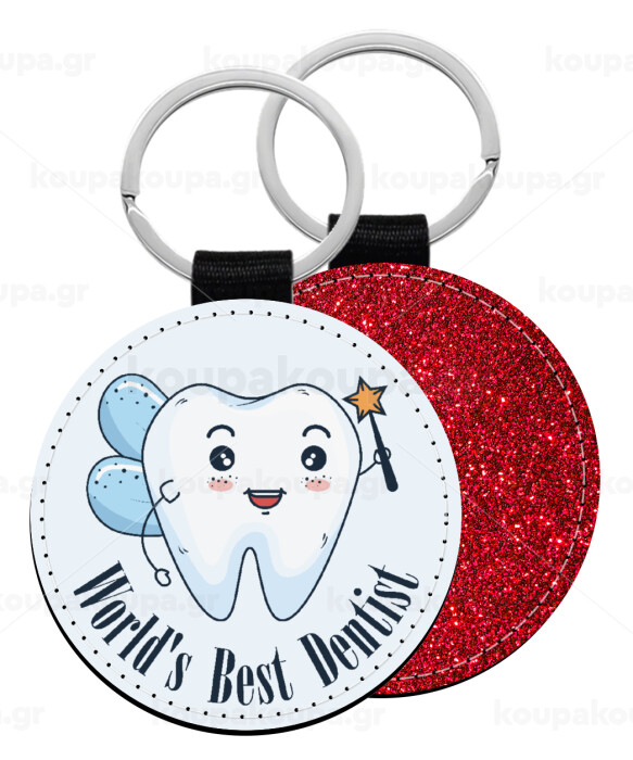World's Best Dentist, Μπρελόκ Δερματίνη, στρογγυλό ΚΟΚΚΙΝΟ (5cm)