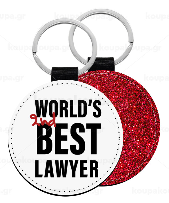 2nd, World Best Lawyer , Μπρελόκ Δερματίνη, στρογγυλό ΚΟΚΚΙΝΟ (5cm)