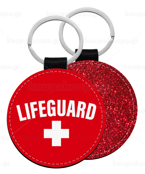 Lifeguard, Μπρελόκ Δερματίνη, στρογγυλό ΚΟΚΚΙΝΟ (5cm)