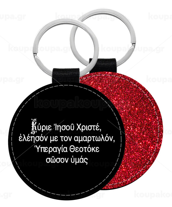 Προσευχή του Ιησού, Μπρελόκ Δερματίνη, στρογγυλό ΚΟΚΚΙΝΟ (5cm)