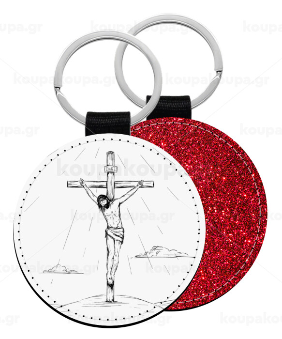 Jesus Christ , Μπρελόκ Δερματίνη, στρογγυλό ΚΟΚΚΙΝΟ (5cm)