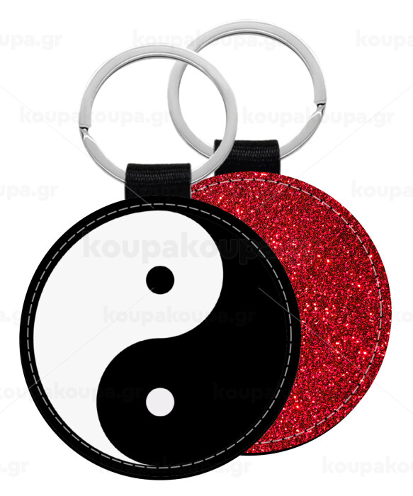 Yin Yang, Μπρελόκ Δερματίνη, στρογγυλό ΚΟΚΚΙΝΟ (5cm)