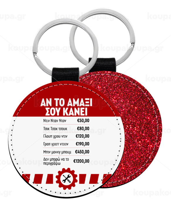 Annoying Noise in Car, Μπρελόκ Δερματίνη, στρογγυλό ΚΟΚΚΙΝΟ (5cm)