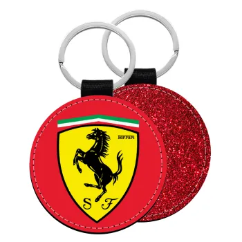 Ferrari, Μπρελόκ Δερματίνη, στρογγυλό ΚΟΚΚΙΝΟ (5cm)