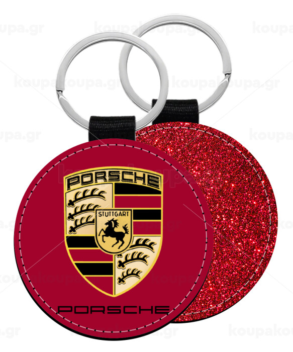 Porsche, Μπρελόκ Δερματίνη, στρογγυλό ΚΟΚΚΙΝΟ (5cm)