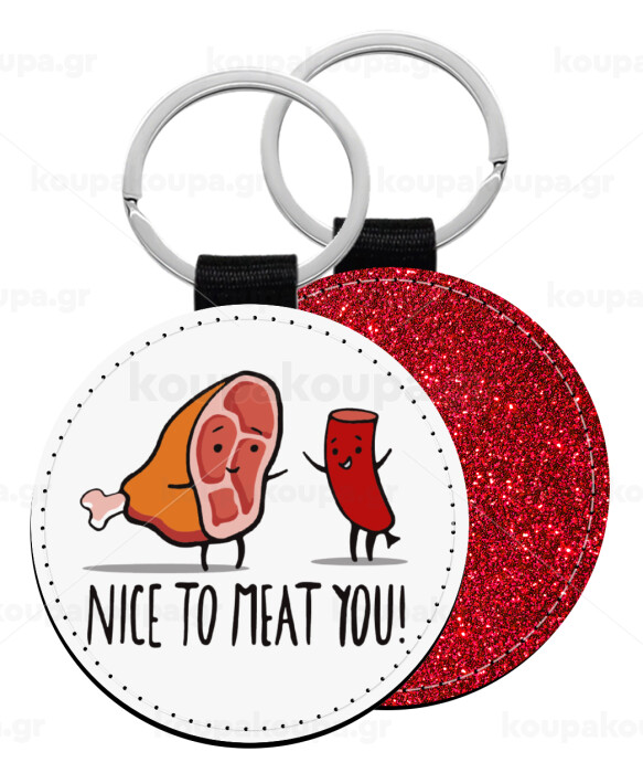 Nice to MEAT you, Μπρελόκ Δερματίνη, στρογγυλό ΚΟΚΚΙΝΟ (5cm)