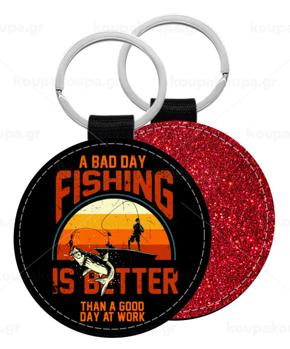 A bad day FISHING is better than a good day at work, Μπρελόκ Δερματίνη, στρογγυλό ΚΟΚΚΙΝΟ (5cm)