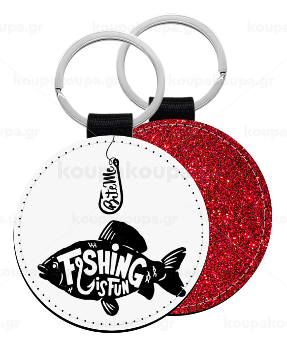 Fishing is fun, Μπρελόκ Δερματίνη, στρογγυλό ΚΟΚΚΙΝΟ (5cm)