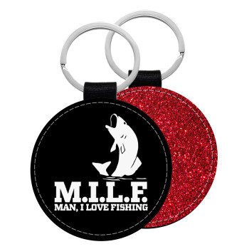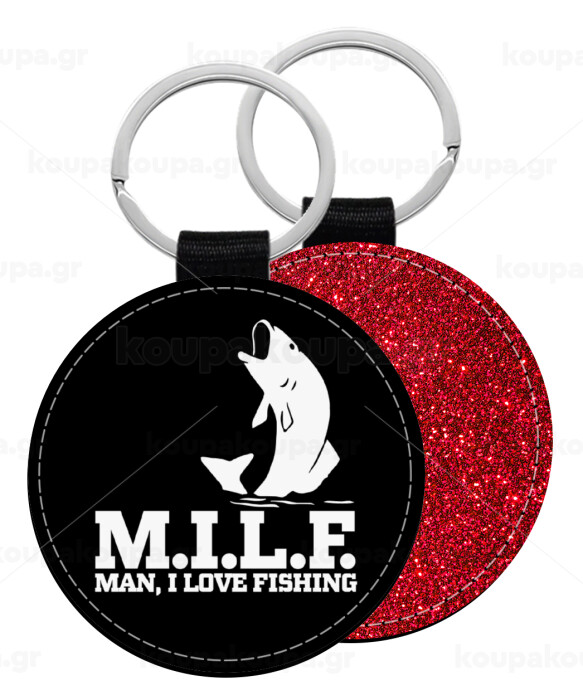 M.I.L.F. Mam i love fishing, Μπρελόκ Δερματίνη, στρογγυλό ΚΟΚΚΙΝΟ (5cm)