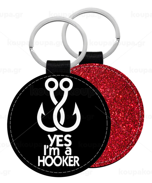 Yes i am Hooker, Μπρελόκ Δερματίνη, στρογγυλό ΚΟΚΚΙΝΟ (5cm)