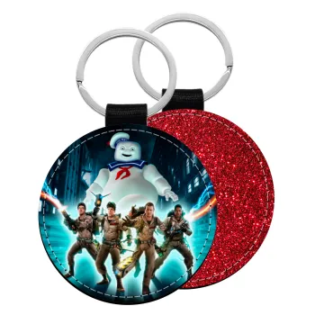 Ghostbusters team, Μπρελόκ Δερματίνη, στρογγυλό ΚΟΚΚΙΝΟ (5cm)