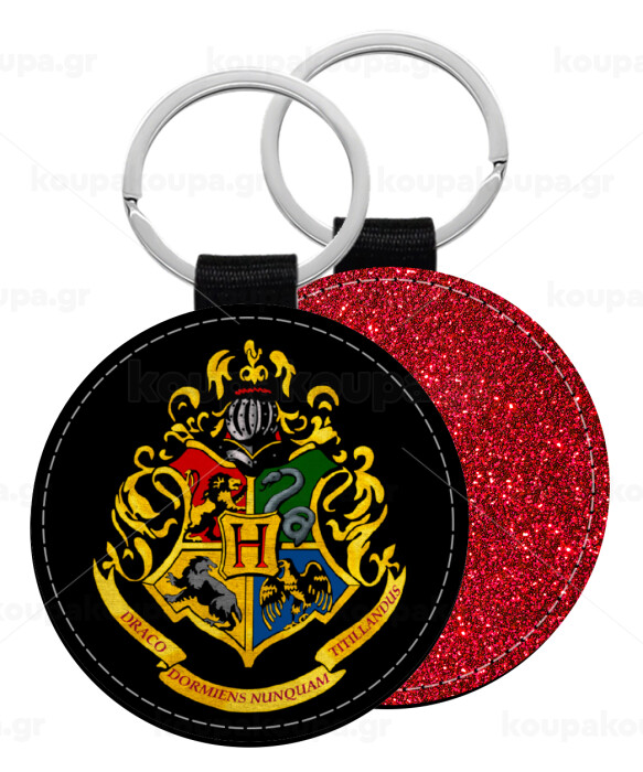 Hogwart's, Μπρελόκ Δερματίνη, στρογγυλό ΚΟΚΚΙΝΟ (5cm)