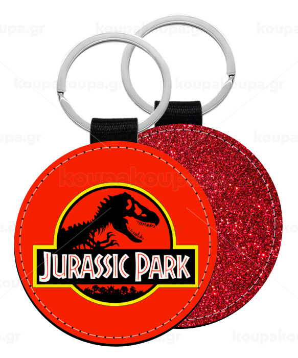 Jurassic park, Μπρελόκ Δερματίνη, στρογγυλό ΚΟΚΚΙΝΟ (5cm)