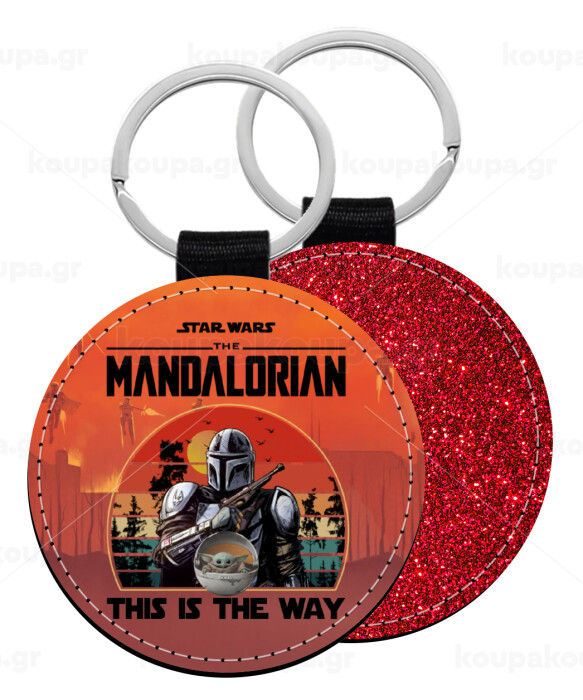 Mandalorian, Μπρελόκ Δερματίνη, στρογγυλό ΚΟΚΚΙΝΟ (5cm)