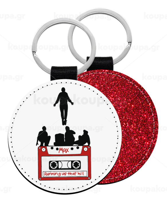 Running up that hill, Stranger Things, Μπρελόκ Δερματίνη, στρογγυλό ΚΟΚΚΙΝΟ (5cm)