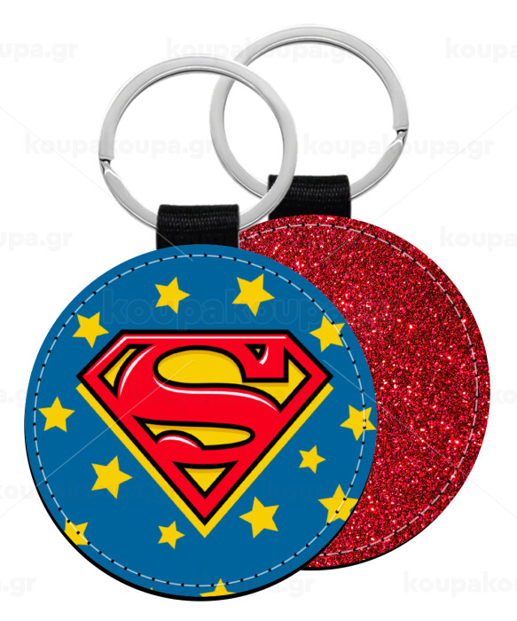 Superman Blue, Μπρελόκ Δερματίνη, στρογγυλό ΚΟΚΚΙΝΟ (5cm)