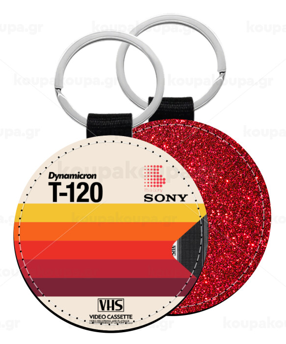 VHS sony dynamicron T-120, Μπρελόκ Δερματίνη, στρογγυλό ΚΟΚΚΙΝΟ (5cm)