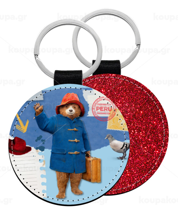 Αρκουδάκι Πάντινγκτον, Μπρελόκ Δερματίνη, στρογγυλό ΚΟΚΚΙΝΟ (5cm)
