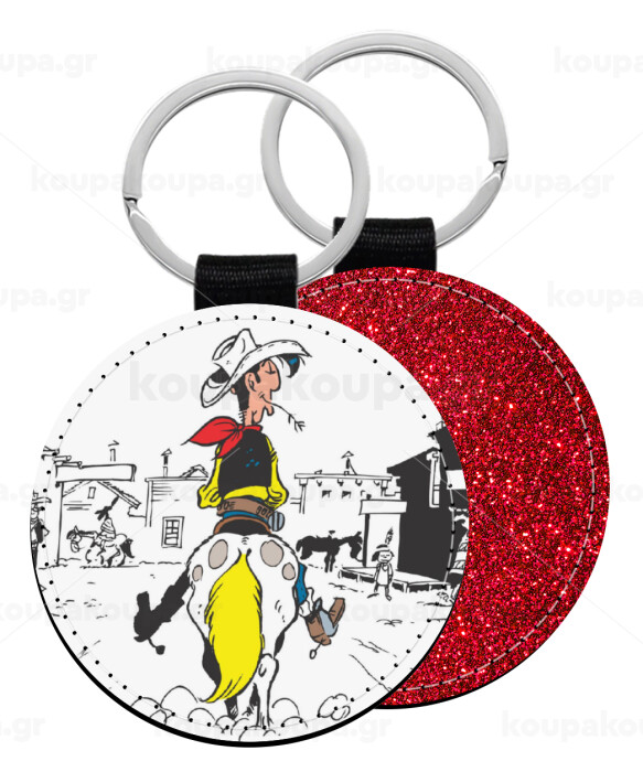 Lucky Luke comic, Μπρελόκ Δερματίνη, στρογγυλό ΚΟΚΚΙΝΟ (5cm)