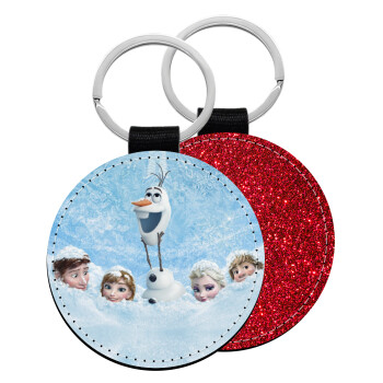 Ψυχρά κι ανάποδα Όλαφ και οι φίλοι του, Μπρελόκ Δερματίνη, στρογγυλό ΚΟΚΚΙΝΟ (5cm)