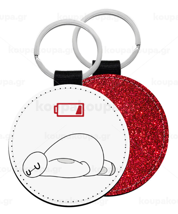 Baymax battery low, Μπρελόκ Δερματίνη, στρογγυλό ΚΟΚΚΙΝΟ (5cm)