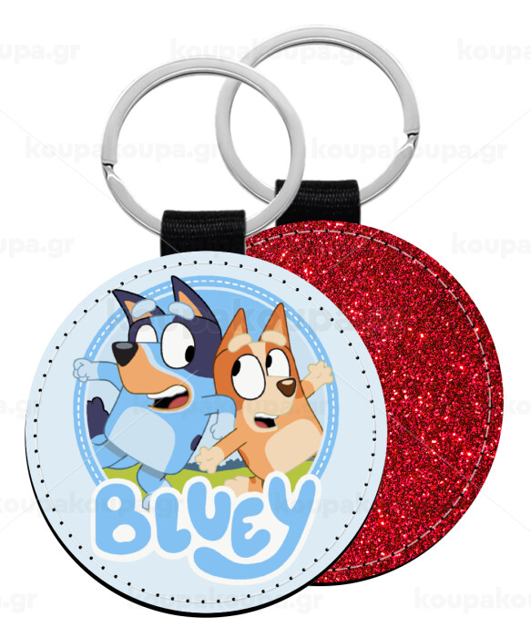 Μπλε, Μπρελόκ Δερματίνη, στρογγυλό ΚΟΚΚΙΝΟ (5cm)