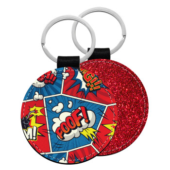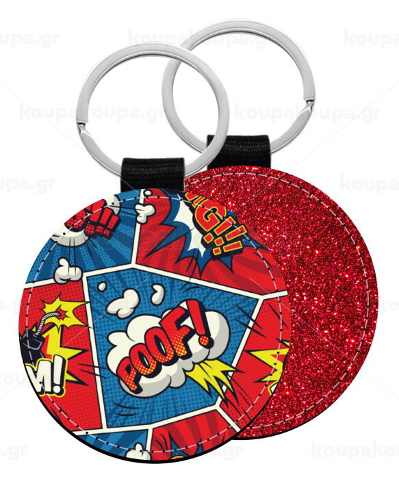Comic boom!, Μπρελόκ Δερματίνη, στρογγυλό ΚΟΚΚΙΝΟ (5cm)