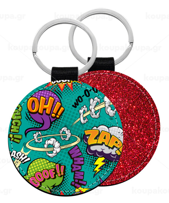 Comic oh, Μπρελόκ Δερματίνη, στρογγυλό ΚΟΚΚΙΝΟ (5cm)
