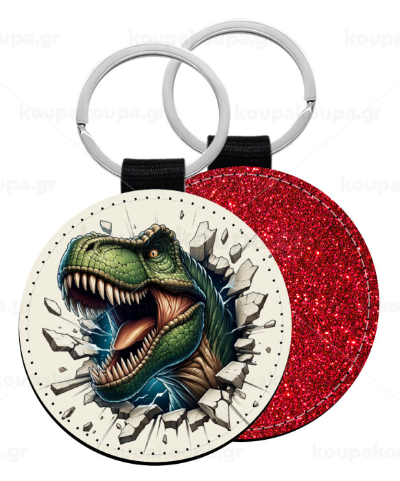 Dinosaur break wall, Μπρελόκ Δερματίνη, στρογγυλό ΚΟΚΚΙΝΟ (5cm)