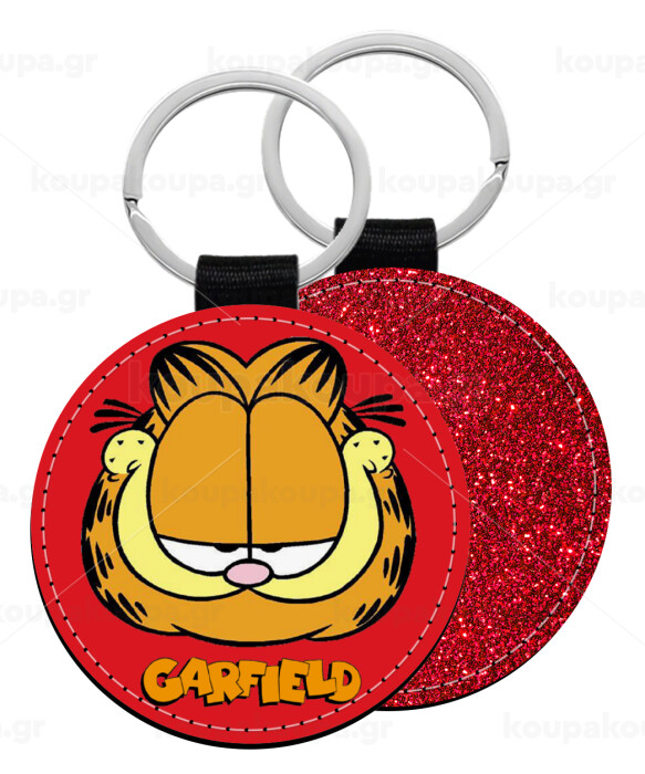 Garfield, Μπρελόκ Δερματίνη, στρογγυλό ΚΟΚΚΙΝΟ (5cm)