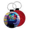 Leatherette keychain with glitter on one side and high resistance leatherette on the other. Safety ring for the keys.