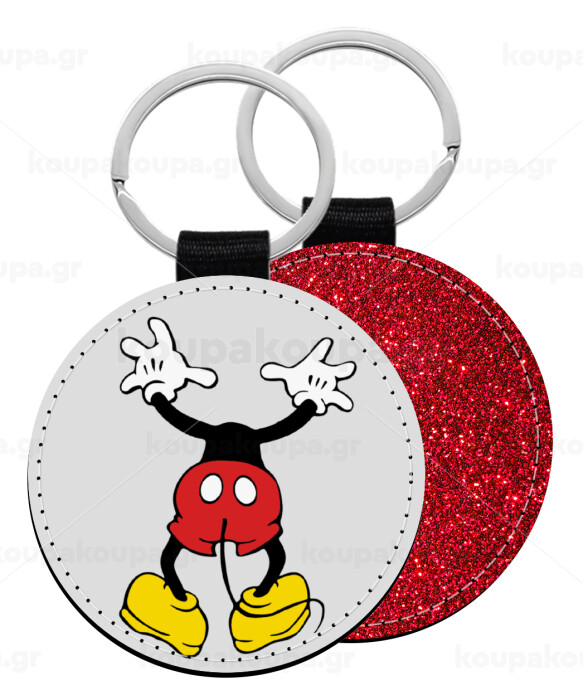 Mickey hide..., Μπρελόκ Δερματίνη, στρογγυλό ΚΟΚΚΙΝΟ (5cm)
