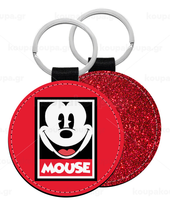 Mickey Mouse, Μπρελόκ Δερματίνη, στρογγυλό ΚΟΚΚΙΝΟ (5cm)