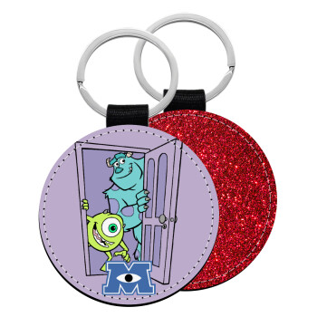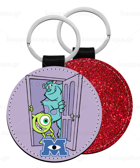Monster inc, Μπρελόκ Δερματίνη, στρογγυλό ΚΟΚΚΙΝΟ (5cm)