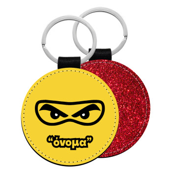 Ninja Eyes με όνομα, Μπρελόκ Δερματίνη, στρογγυλό ΚΟΚΚΙΝΟ (5cm)