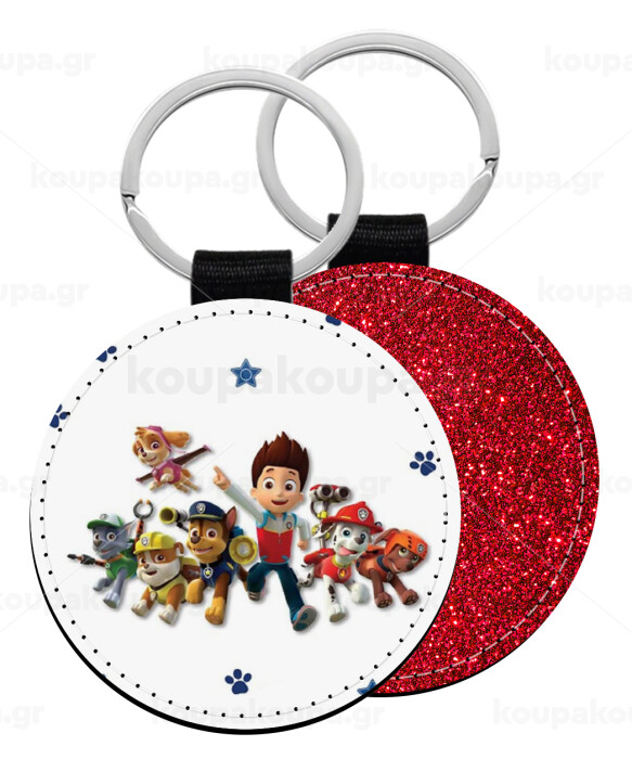paw patrol, Μπρελόκ Δερματίνη, στρογγυλό ΚΟΚΚΙΝΟ (5cm)