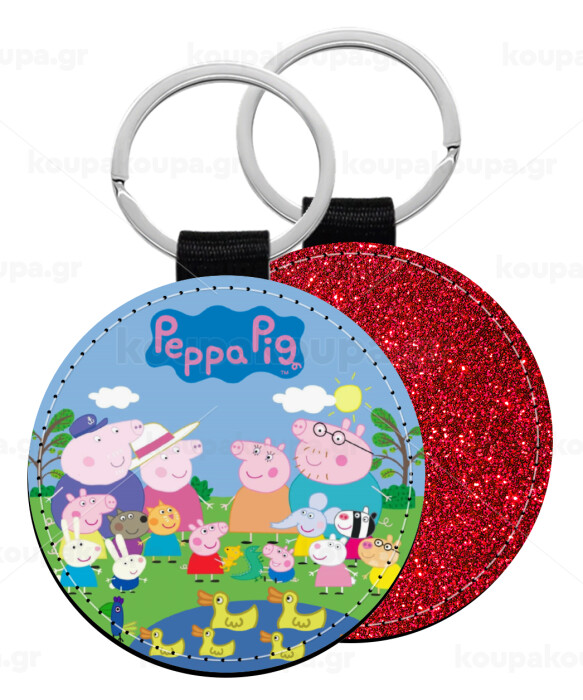 Peppa pig Family, Μπρελόκ Δερματίνη, στρογγυλό ΚΟΚΚΙΝΟ (5cm)