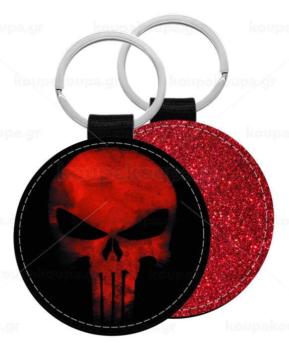 Red skull, Μπρελόκ Δερματίνη, στρογγυλό ΚΟΚΚΙΝΟ (5cm)