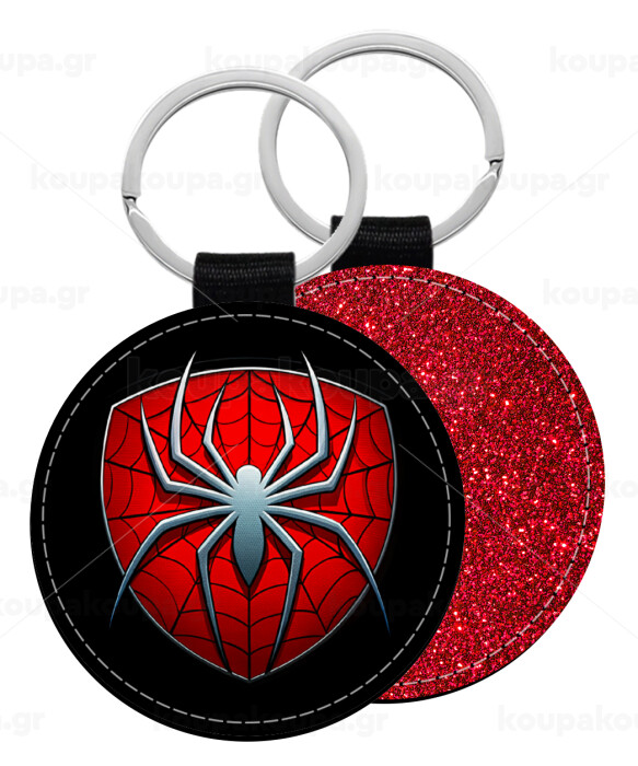 Spider-man, Μπρελόκ Δερματίνη, στρογγυλό ΚΟΚΚΙΝΟ (5cm)