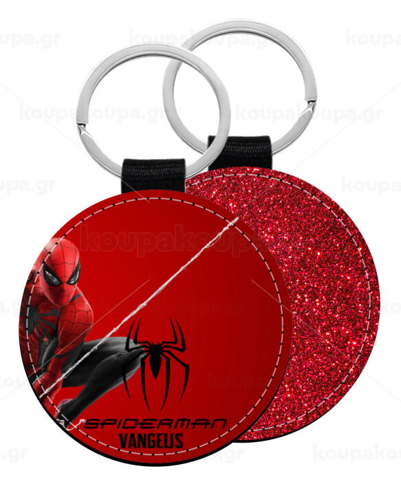 Spiderman, Μπρελόκ Δερματίνη, στρογγυλό ΚΟΚΚΙΝΟ (5cm)