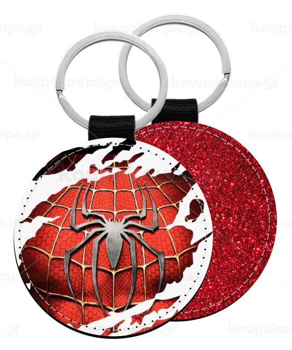 Spiderman cracked, Μπρελόκ Δερματίνη, στρογγυλό ΚΟΚΚΙΝΟ (5cm)