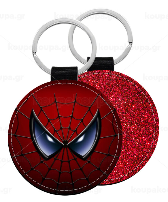Spiderman mask, Μπρελόκ Δερματίνη, στρογγυλό ΚΟΚΚΙΝΟ (5cm)
