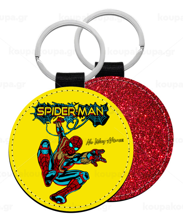 Spiderman no way home, Μπρελόκ Δερματίνη, στρογγυλό ΚΟΚΚΙΝΟ (5cm)