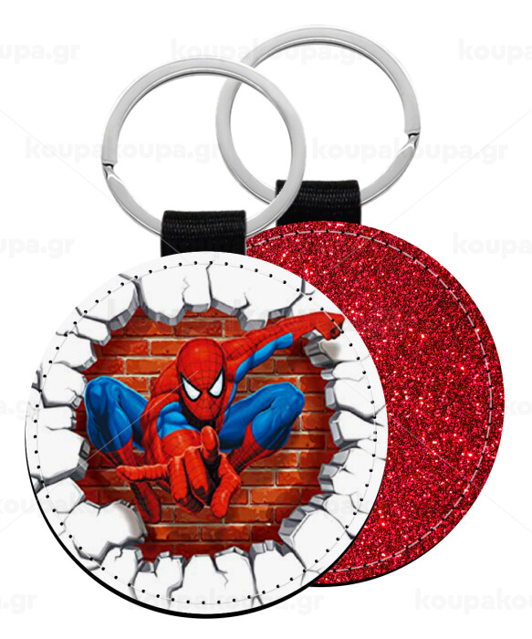 Spiderman wall, Μπρελόκ Δερματίνη, στρογγυλό ΚΟΚΚΙΝΟ (5cm)