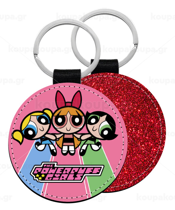 The powerpuff girls , Μπρελόκ Δερματίνη, στρογγυλό ΚΟΚΚΙΝΟ (5cm)