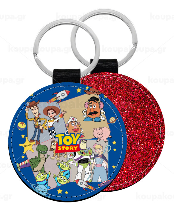 toystory characters, Μπρελόκ Δερματίνη, στρογγυλό ΚΟΚΚΙΝΟ (5cm)