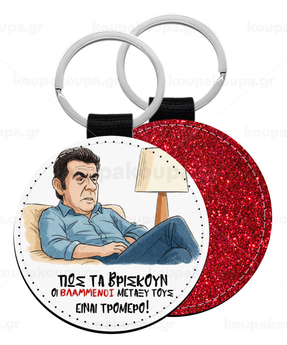 ΠΩΣ ΤΑ ΒΡΙΣΚΟΥΝ ΟΙ ΒΛΑ....ΝΟΙ ΜΕΤΑΞΥ ΤΟΥΣ, ΕΙΝΑΙ ΤΡΟΜΕΡΟ!!!, Μπρελόκ Δερματίνη, στρογγυλό ΚΟΚΚΙΝΟ (5cm)