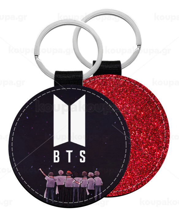 BTS, Μπρελόκ Δερματίνη, στρογγυλό ΚΟΚΚΙΝΟ (5cm)