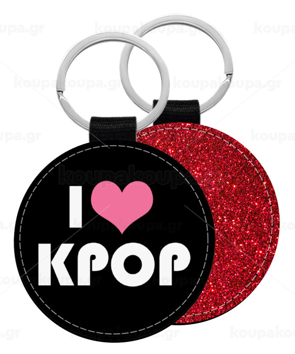 I Love KPOP, Μπρελόκ Δερματίνη, στρογγυλό ΚΟΚΚΙΝΟ (5cm)